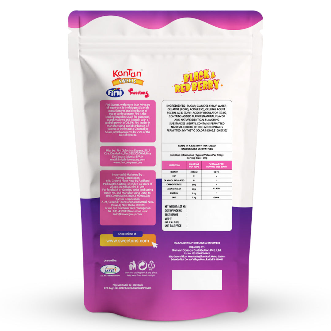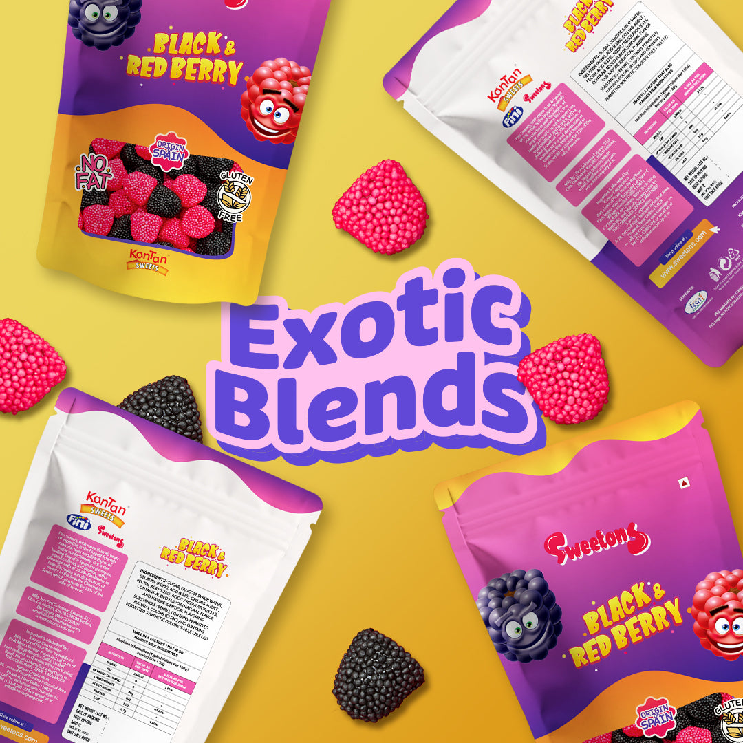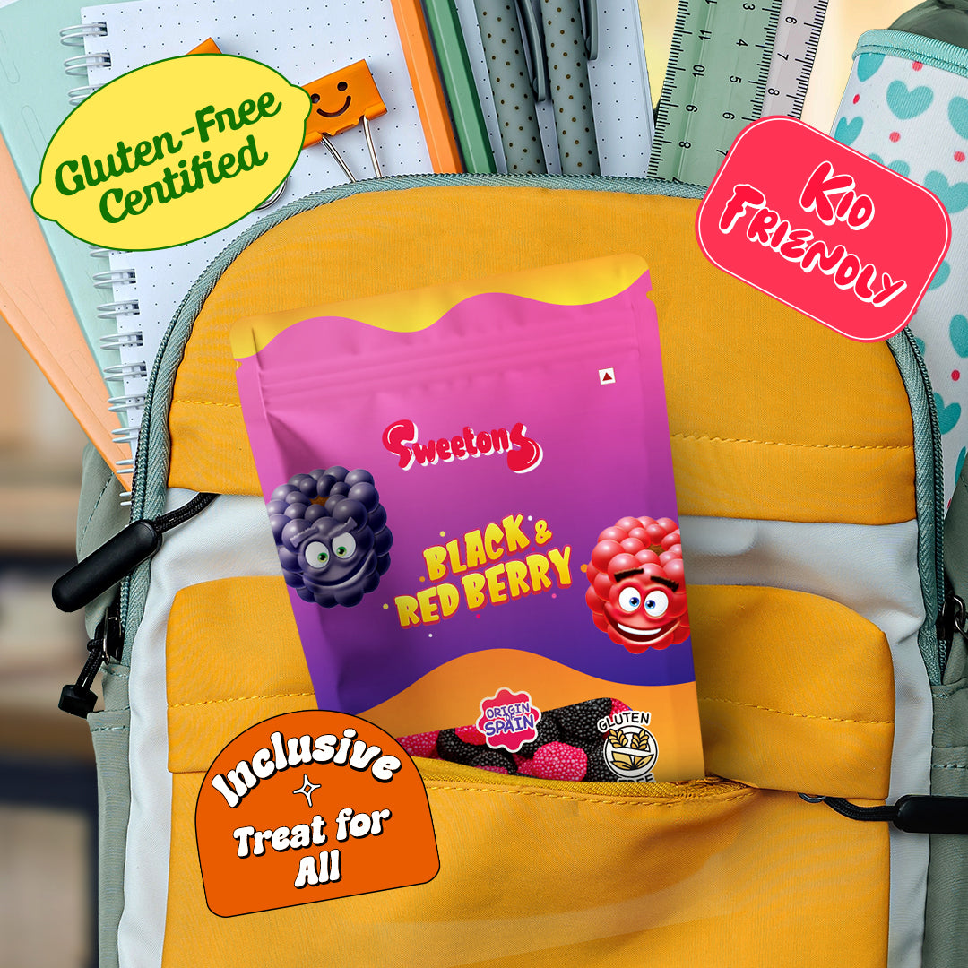 Experience the fruity bliss of Sweetons Black & Red Berries Jelly Candy, a delicious mix of chewy jelly and crunchy candy beads inspired by real berries. Bursting with blackcurrant and raspberry flavours, these berry-shaped gummies offer a unique texture and taste in every bite. Made in Spain, they’re gluten-free, fat-free, and non-vegetarian for that classic gummy chew. Each pack of three (50g each) is perfect for sharing, gifting, or satisfying your sweet cravings anytime, anywhere.