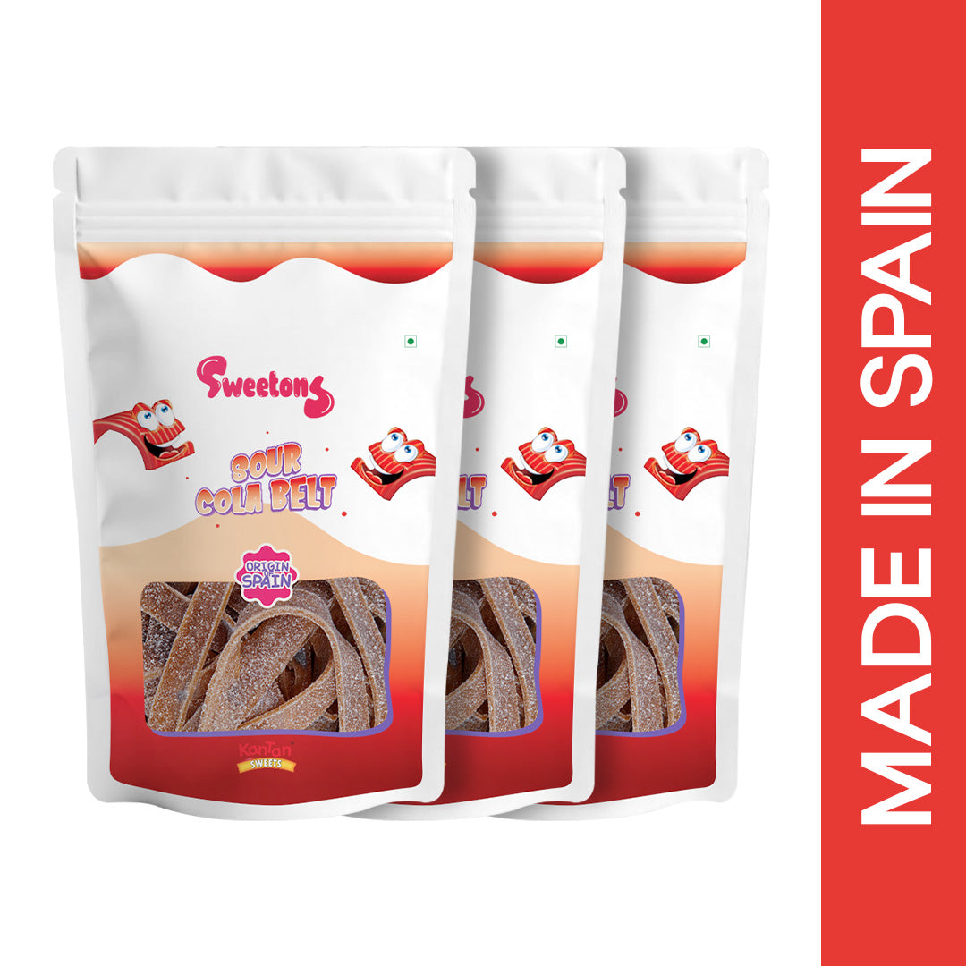 Enjoy a fizzy burst of flavour with Sweetons Sour Cola Belt Candy – chewy, sugar-dusted jelly strips packed with the bold and nostalgic taste of cola. Each strip delivers a tangy, sweet-and-sour punch for a fun snacking experience. Made in Spain with 100% vegan, gelatin-free ingredients, these candy belts are perfect for all ages and dietary preferences. Great for parties, gifting, or travel, this Pack of 3 (48g each) offers a delicious, on-the-go treat for every cola lover.